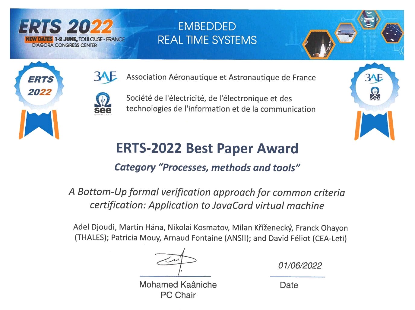06 May 2025, Talk at FASE 2025 at ETAPS 2025 in Hamilton, Canada Prove your Colorings: Formal Verification of Cache Coloring of Bao Hypervisor.[slides]